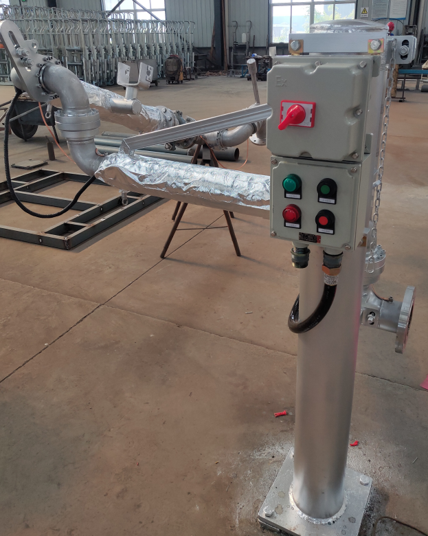 根據(jù)業(yè)主要求,乙二胺需在定溫60℃下方可進(jìn)行裝卸作業(yè)。我公司電氣專(zhuān)業(yè)工程師成功設(shè)計(jì)出電溫控設(shè)施,可在鶴管管線(xiàn)加熱至60℃后經(jīng)熱傳感器信號(hào)輸出后停止加熱,在鶴管管線(xiàn)溫度低于60℃自動(dòng)重啟加熱設(shè)備。該設(shè)備操作簡(jiǎn)單,安全穩(wěn)定性高,一次性設(shè)定即可,能有效防范因操作不當(dāng)造成裝卸不暢及設(shè)備使用壽命短的問(wèn)題。